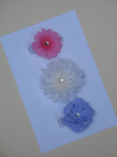 I just put this new Newborn Set up on etsy. It's a set of mini flowers that I think would be so cute on newborns! It also comes with a headband just in case the newborn has as much hair as my newborn had! :)